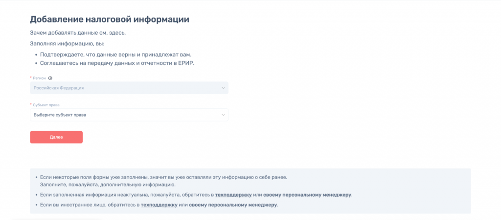 Если вы заполните форму «Добавление налоговой информации», мы сможем: