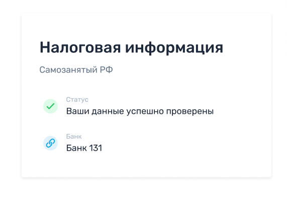 После заполнения формы выполняется проверка на наличие статуса самозанятого. Результаты отобразятся в разделе «Мой профиль» в течение дня.