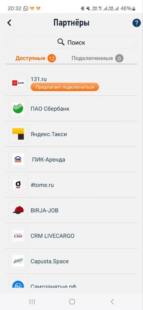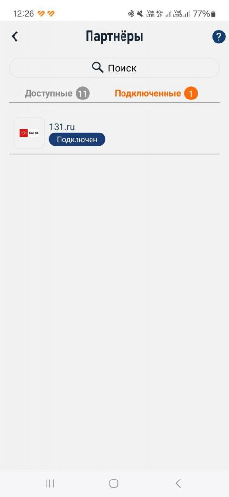 В разделе «Партнеры» отобразится запрос на подключение от Банка 131. Нажмите на «Предлагает подключиться»:
